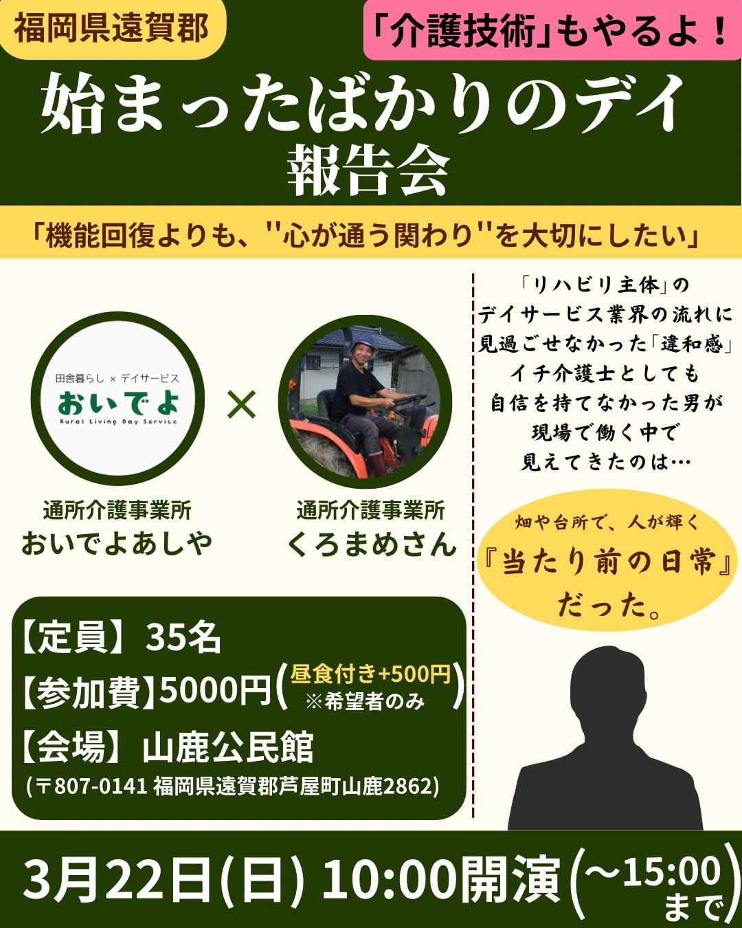 3月22日(日)、福岡県(遠賀郡)にて【始まったばかりのデイ報告会】を開催決定!