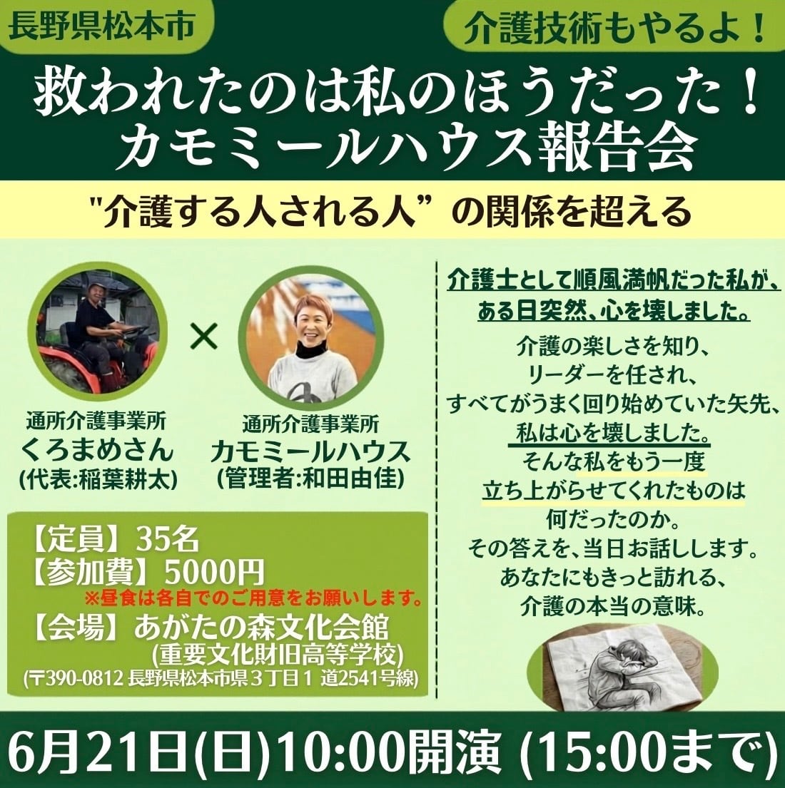 6月21日(日)、長野県(松本市)にて【救われたのは私のほうだった!カモミールハウス報告会】を開催決定!